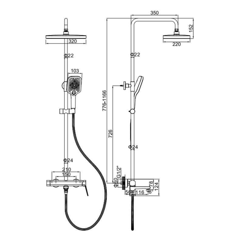 Душевая стойка со смесителем LEDEME H85 L2485Y