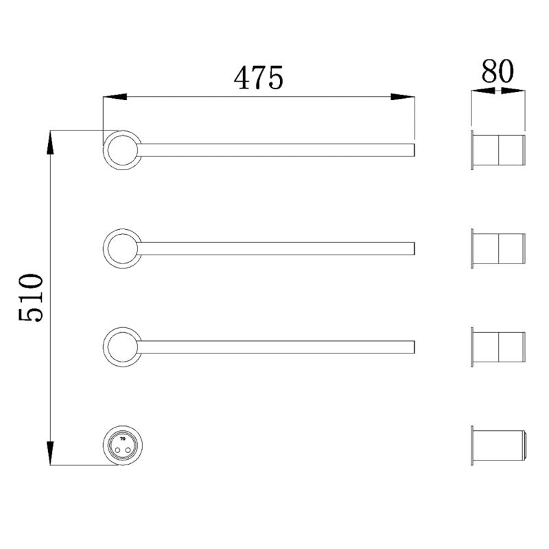 полотенцедержатель, электрический кабель, декоративные заглушки, крепления