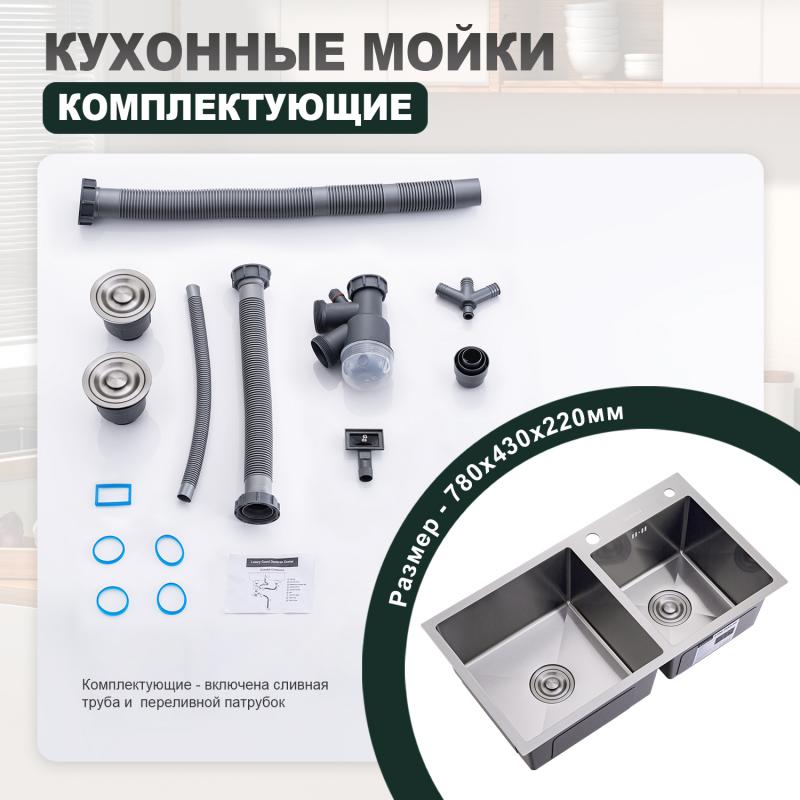 • Комплектующие - сифон с выходом для подключения посудомоечной машины и фильтра для питьевой воды