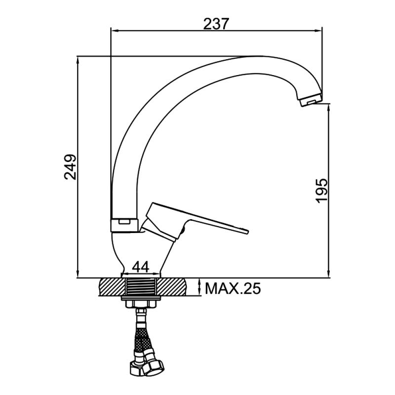• Высота излива: