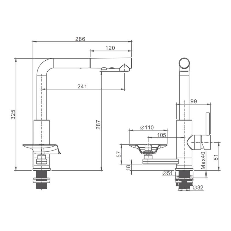 • Размер излива: