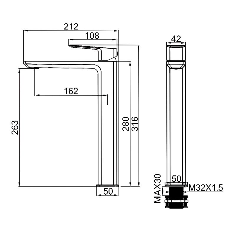 • Высота излива: