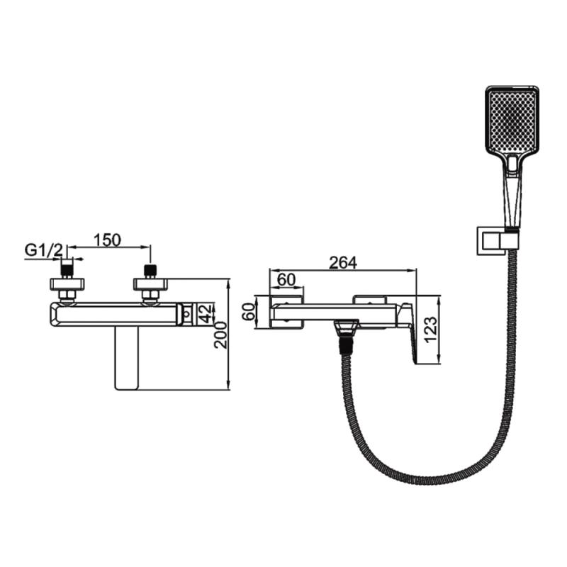 Душевой шланг 150 см, Душевая лейка, Держатель лейки, Комплект отражателей, Комплект эксцентриков
