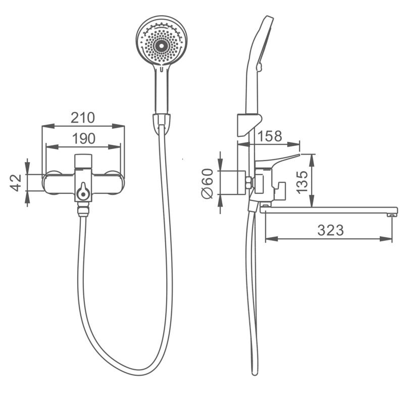 Душевой шланг 150 см, Душевая лейка, Держатель лейки, Комплект отражателей, Комплект эксцентриков